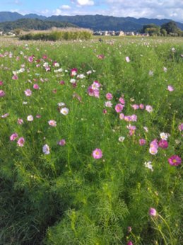 ということで、話は変わりまして、今年もご利用者様が、「熊さん日記に載せる写真を撮ってきますわー!」と言って、写真を送ってきてくださいました。奈良県では有名な「藤原京」の「コスモス畑」ですね。本当にありがとうございます。