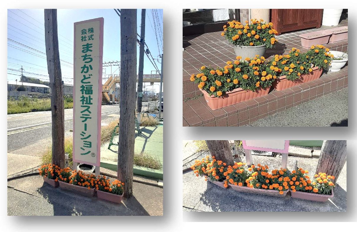 当事業所では、隣市の宇陀市さんの活動に協力して、事務所の周りに黄花コスモスとマリーゴールドを植えることにしました。